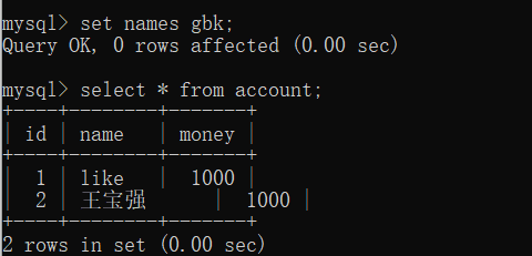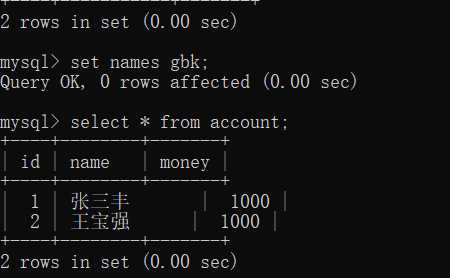 这个时候我们输入:set names gbk后再观察就会发现显示正常了