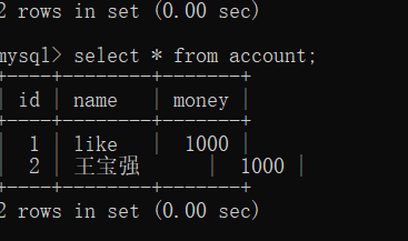 这时候我们需要在第一个命令提示符中使用commit结束这个事务,再在第二个命令提示符中查找操作就会发现更新成功