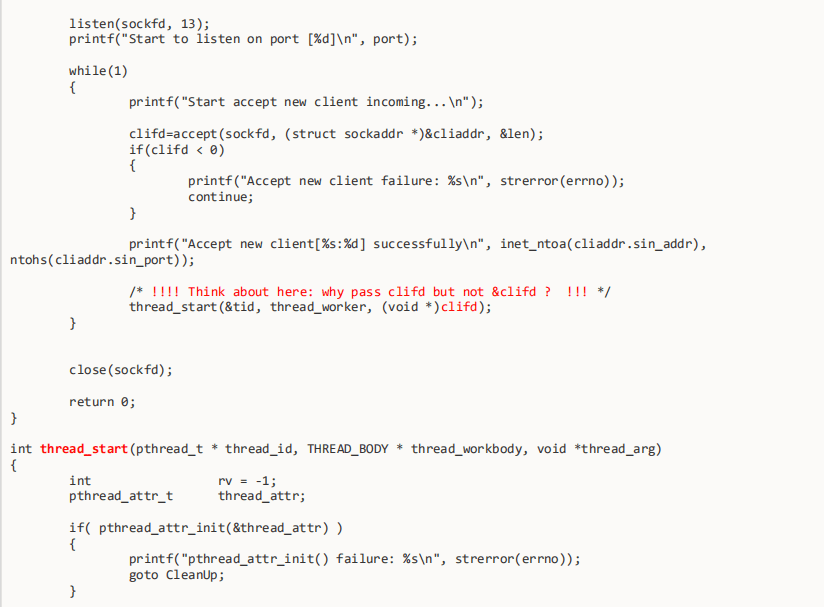 - 第四个参数arg就是传给了所调用的函数的参数,如果有多个参数需要传递给子线程则需要封装到一个结构体里传进去;