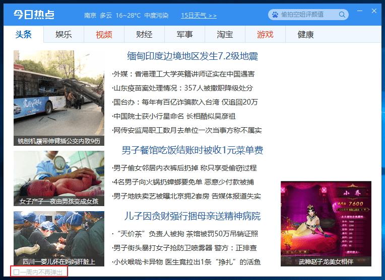 最近电脑总是弹出一个“今日热点”的弹窗,而它的左下角只有【一周内不再弹出】的选项。这很明显是一个流氓软件,应该是我们安装某个软件后捆绑的软件,所以我们只要找到它卸载就好了。