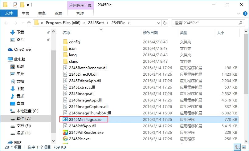 3. 可以看到该软件所在的文件夹,是属于2345公司的。我们删除掉2345MiniPage.exe。
