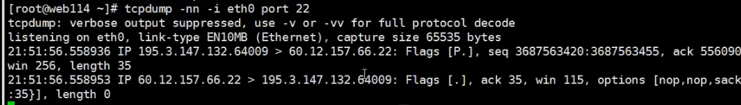 -nn 选项的作用"是让第3列和第4列显示成“IP+端口号”的形式,如果不加-nn选项,则显示"主机名+服务名称".
