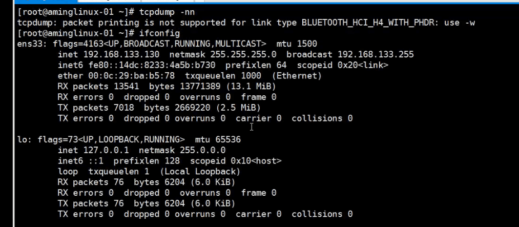 如果在远程登录服务器,当使用ifdown ens33 的话,会导致无法再连接服务器。