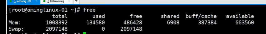free 有三行,其中第一行是说明,第二行是内存情况,第三行是交换分区情况。