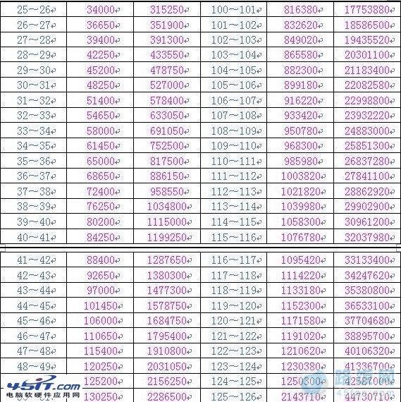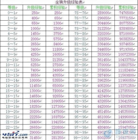 坐骑升级经验表