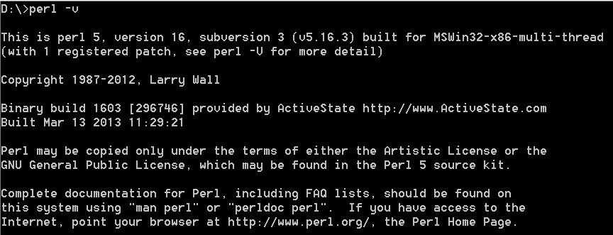 下载与操作系统匹配的Version,Next>>逐步安装,再用perl -v验证是否安装成功
