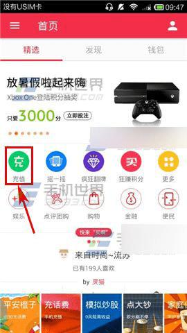 1)打开【万里通】,进入首页后点击【充值】按钮。(如下图)