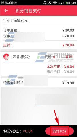 3)积分够的话直接支付积分即可,如果积分不够可以使用现金,首先先点击【支付积分】扣除积分抵现的一部分,接着选择一种【现金支付方式】,输入支付密码即可。(如下图)