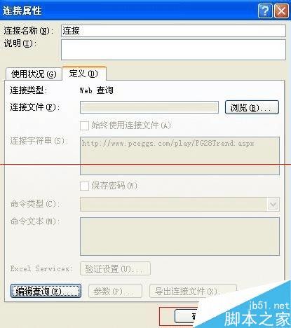 5、还是同一个对话框,在“定义”的下面,可以看到我们苦苦寻觅的“编辑查询”了,接下来就可以打开外部网站,导入想要导入的数据了;