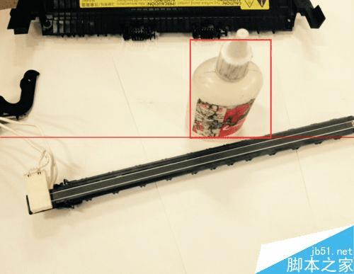 第六步,酒精擦拭干净后需要在上门涂上硅油,然后套上定影膜后。安装拆卸的顺序依次装回去。