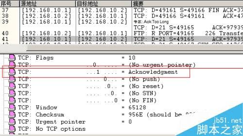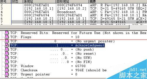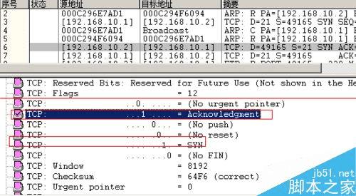 5、用PC1访问PC2之后,用Sniffer抓包分析出第二次握手ACK与SYN值都为1