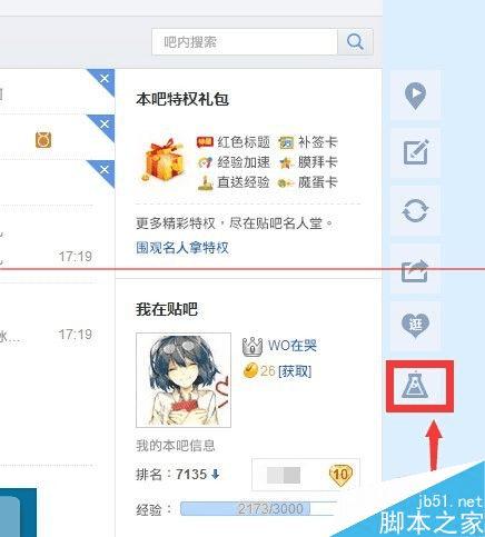 4、进入之后,在贴吧里面的右列可以看到有一些功能键,点击如图所示的功能键