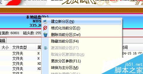 6、接下来右击已合并的分区,从弹出的右键菜单中选择“建立新分区”项,以创建两个分区。