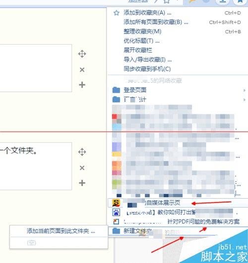 5、在收藏夹里,点住一条收藏可以拖到文件夹里,如图。