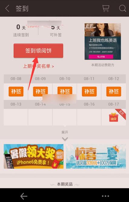 接下来就会进入到签到面板,我们单击“签到领阅饼”选项卡。
