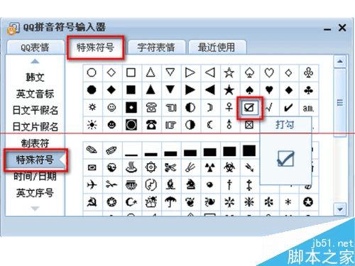 如何使用QQ拼音输入法输入带对号的方框符号?