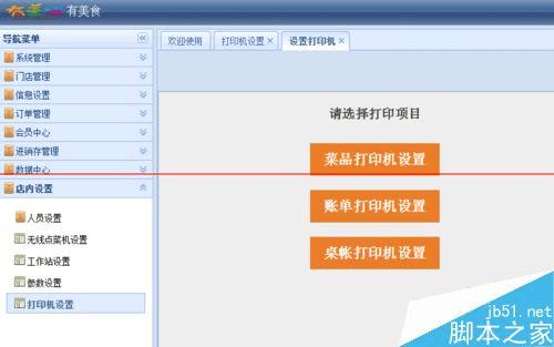 第三步:收银菜品打印机设置
