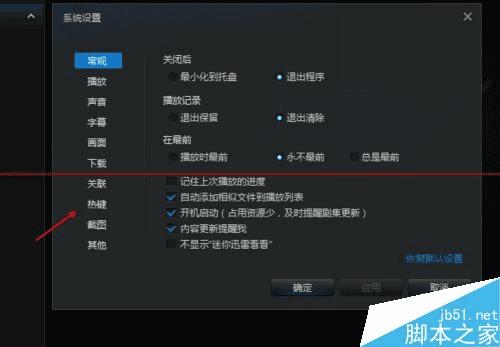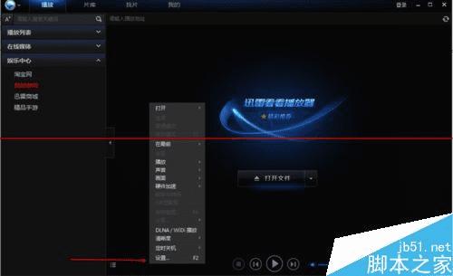 2、我们在迅雷看看空白出右键,找到下边设置的按钮