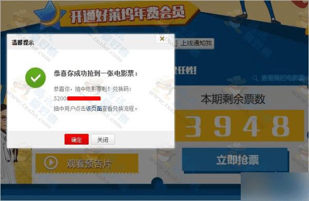 抽到电影票去卖座网兑换,兑换地址 http://www.maizuo.com/zt/index.htm?id=360