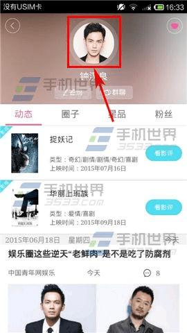 1)打开FansBook,进入首页点击一位关注了的【偶像】,进入到偶像社区,点击偶像的【头像】。(如下图)