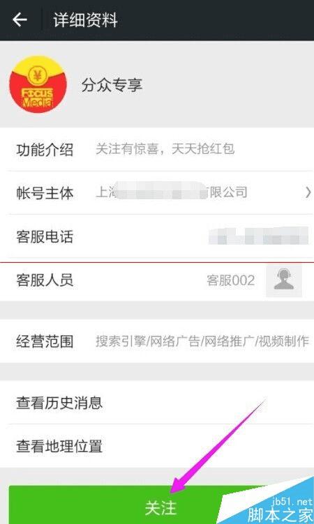 2、直接在输入框中输入:公众专享,在打开的搜索内容中,点击第一个官方公众号.点击“关注”。