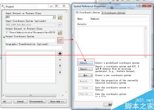 3、在打开的Project窗口中,选择输出的空间坐标系统,然后,点击“Select”,如下图所示: