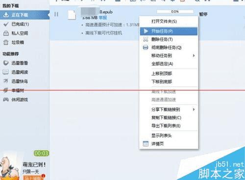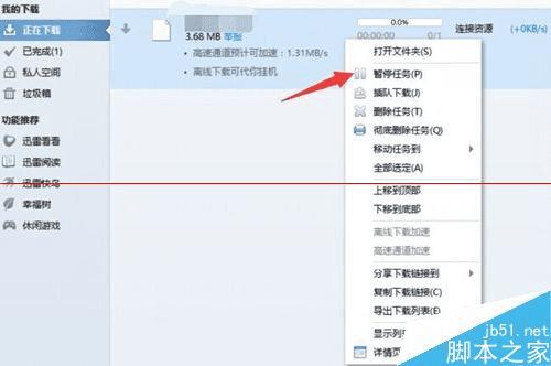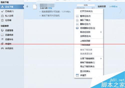 5、然后,我们再一次右键这刚刚暂停的下载任务。
