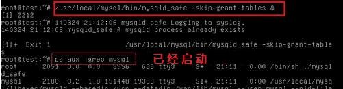 然后用非正常方式起动mysql,/usr/local/mysql/bin/mysqld_safe –skip-grant-tables &