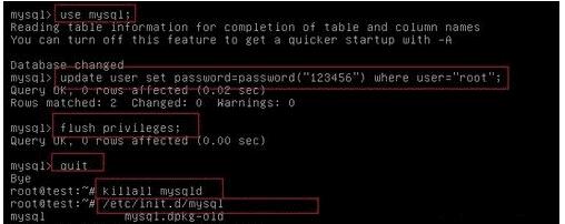 然后就是>use mysql;>update user set password=password("输入新的密码") where user="root";>flush privileges;重新杀掉mysql进程,用正常方法启动mysql,一切OK,大功告成,如下图: