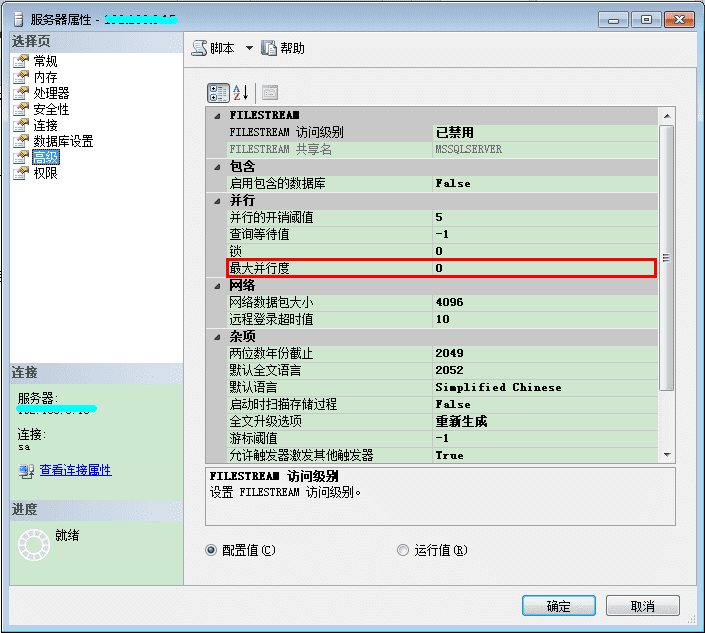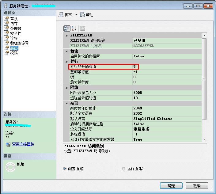这里你配置的数字定义查询成本,查询优化器用它来找更便宜的并行执行计划。如果找到的并行计划更便宜,这个计划会被执行,不然串行计划会被执行。从刚才的图你可以看到,SQL Server默认配置使用5的成本阀值。当你的串行计划查询成本大于5,然后查询优化器再次运行查询优化来找更便宜并行执行计划的可能。