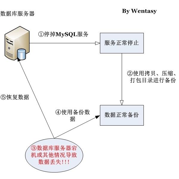 用一句话概括冷备,就是把数据库服务,比如MySQL,Oracle停下来,然后使用拷贝、打包或者压缩命令对数据目录进行备份。如果数据出现异常,则可以通过备份数据恢复。冷备一般需要定制计划,比如什么时候做备份,每次对哪些数据进行备份等等。但是由于这样的备份占用过多的空间,对大数据量的环境下不一定适合,故生产环境很少使用。