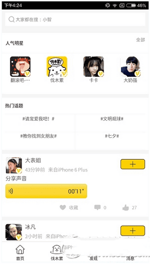 点击“发现”,你在这里能够发现人气明星和热门话题……