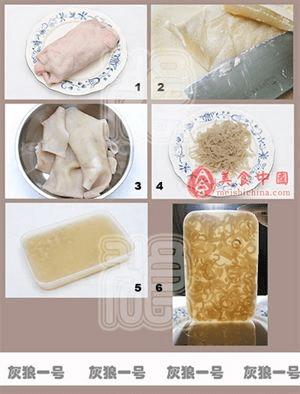 到这一步要提示的,如果你处理的猪皮相当多,可以只用一部分,将剩下的装在盒子里冷冻起来,待到想吃的时候再拿出来直接参考后面几步就可以了。