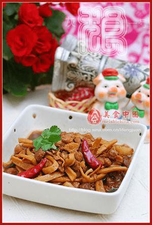 4、电压锅煮好后,将电压锅中的全部东西重新倒入炒菜锅,开火,加入适量盐,翻炒,收汁,汤汁大约收干后起锅即可。