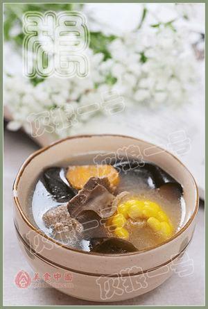 老玉米1个、海带结200克、胡萝卜1根、大葱2-3段、生姜3-4片、“龙骨”2斤、盐少许