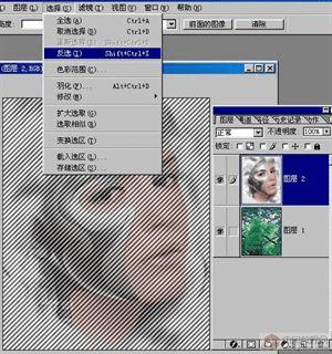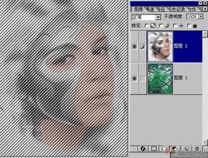 大家知道这么原理吗? ctrl+a全选后,就是给图片加上了一个黑白相间的蒙版。 蒙版的白色部分是透明的,黑色部分是不透明的。 这里就是利用了这一点,两个图像其实本来就同时存在于一幅图中的。没全选时你看不到下面的人物是利用了大家的眼睛辨别精度有限这个缺陷,当全选时,蒙版中黑色部分盖住的正好是树林那一部分,所以树林看不到了,而那人物图的像素正好处于白色部分的范围,也就是透明范围,所以看到的只有人物了。 还值得说明一点是:全选后蒙版总是从图片左上角的第一个像素开始蒙起的,所以在我们做图之前就该明白让哪层被蒙,又让哪层显露,心里该有个谱。(附图) 还说一句:做好的图片在PS里是看不见效果的。要贴上来,用ctrl+a全选后才能看见效果