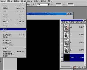 用鼠标点按红圈圈住的钮 将Alpha 1通道作为选区载入。如图所示