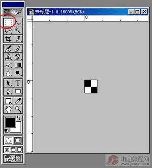 用矩形选框工具分别选取左上角和右小角各一个像素,然后填充黑色。如图所示