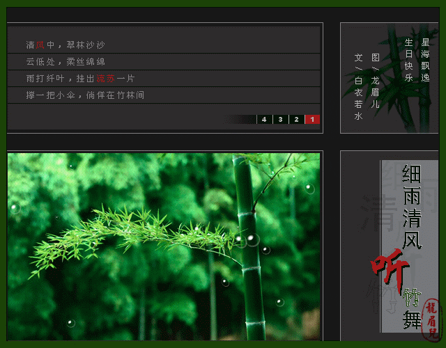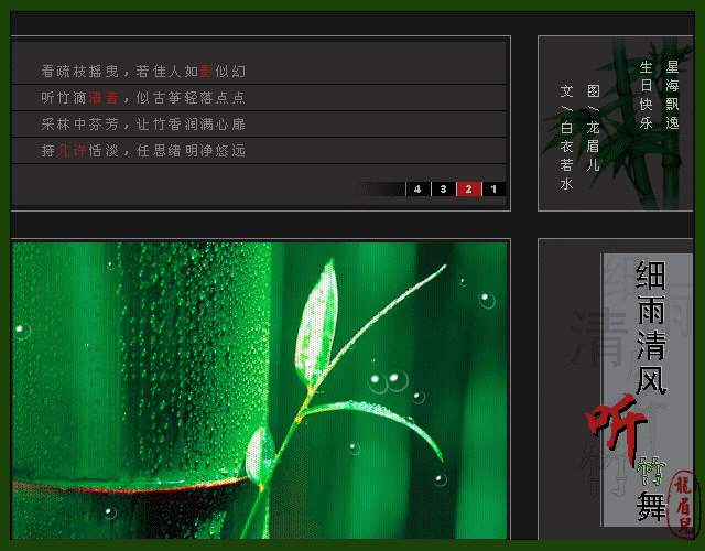 竹之舞之音画的详细介绍 来源:www.45fan.com 2015-12-24 16:28:48 竹之舞之音画的详细介绍 推荐阅读 中华人民共和国国歌英文版介绍和欣赏 尸体标本欣赏 Webdings字体图案欣赏 小狗写真集欣赏 《抒情中国系列-烟雨江南》纯音乐欣赏 北京雕塑公园照片欣赏 学术流行歌曲欣赏和推荐 罕见的珍贵历史照片欣赏 美女的经济学内容介绍 慢慢的我们都懂了的文章介绍和欣赏