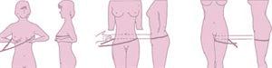 ◇ 要点:先将软尺收紧,然后慢慢地放松,测量其自然回复到的地方的尺寸测量时应使软尺的下部分完全贴紧身体。