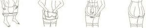 一手抓住中央部分,一手将内外侧的大腿脂肪用力向中央后方提举使臀部脂肪收入束裤臀杯中, 左右两边重复相同的动作。
