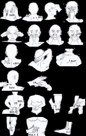 1. 按揉风池 (如下图Gb20, 枕骨之下),30 次。