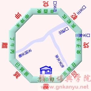 坐艮向坤.艮卦之後天位居先天八卦之震卦位,則艮卦之後天水位在於震卦甲卯乙方。