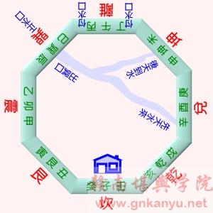 坐兌向震.兌卦之後天位居先天八卦之坎卦位,則兌卦之後天水位在於坎卦壬子癸方。