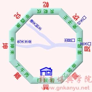 坐艮向坤.坤卦之後天位居於先天巽卦,則後天八卦之巽卦辰巽巳方水來為艮卦之客水。