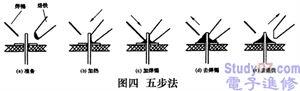 ??作为一种初学者掌握手工锡焊技术的训练方法,五步法是卓有成效的,值得单独作为一节来讨论。