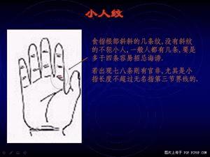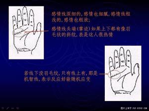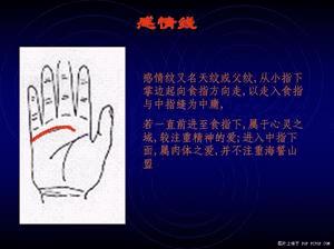 感情纹又名天纹或父纹,从小指下掌边起向食指方向走,以走入食指与中指缝为中庸,