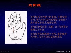 太阳纹有岛纹或像十字形,都是破坏太阳纹,代表声望或金钱的损失