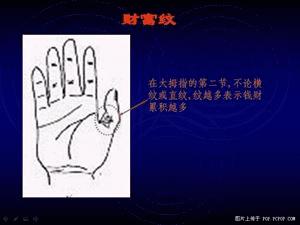 在大拇指的第二节,不论横纹或直纹,纹越多表示钱财累积越多