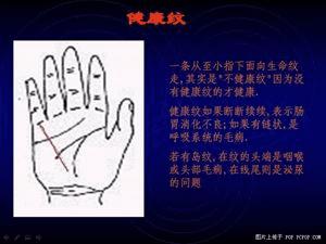 健康纹如果断断续续,表示肠胃消化不良;如果有链状,是呼吸系统的毛病.